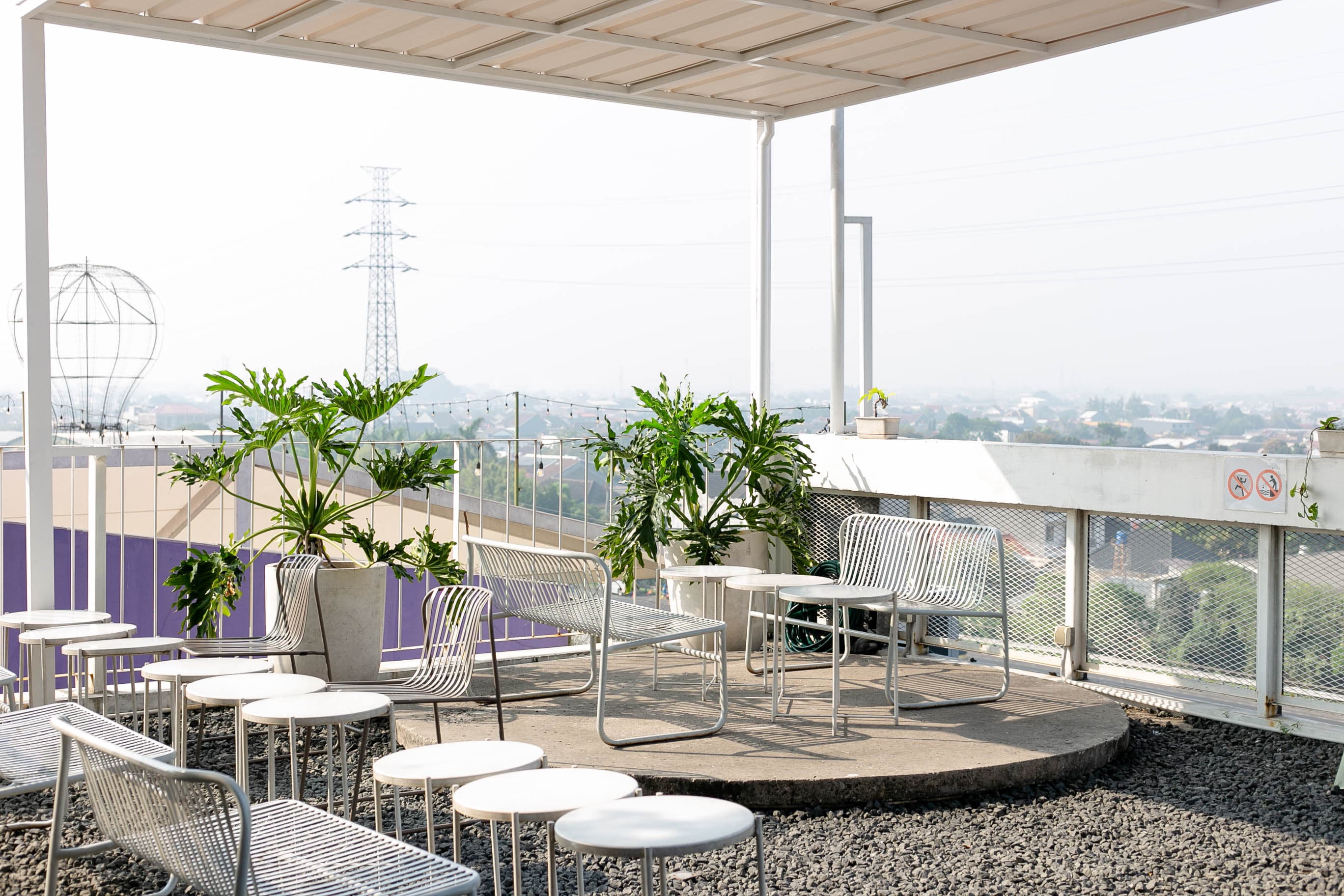 Berlokasi di rooftop Miko Mall, tempat ini menghadirkan pengalaman ngopi sambil menikmati pemandangan kota dari ketinggian. Dari sini, pengunjung bisa melihat langsung lalu lintas jalan tol Cileunyi hingga kereta cepat Whoosh yang melintas setiap 30 menit—bumbu hiburan visual yang kayaknya belum ditemukan lagi di tempat lain, deh.