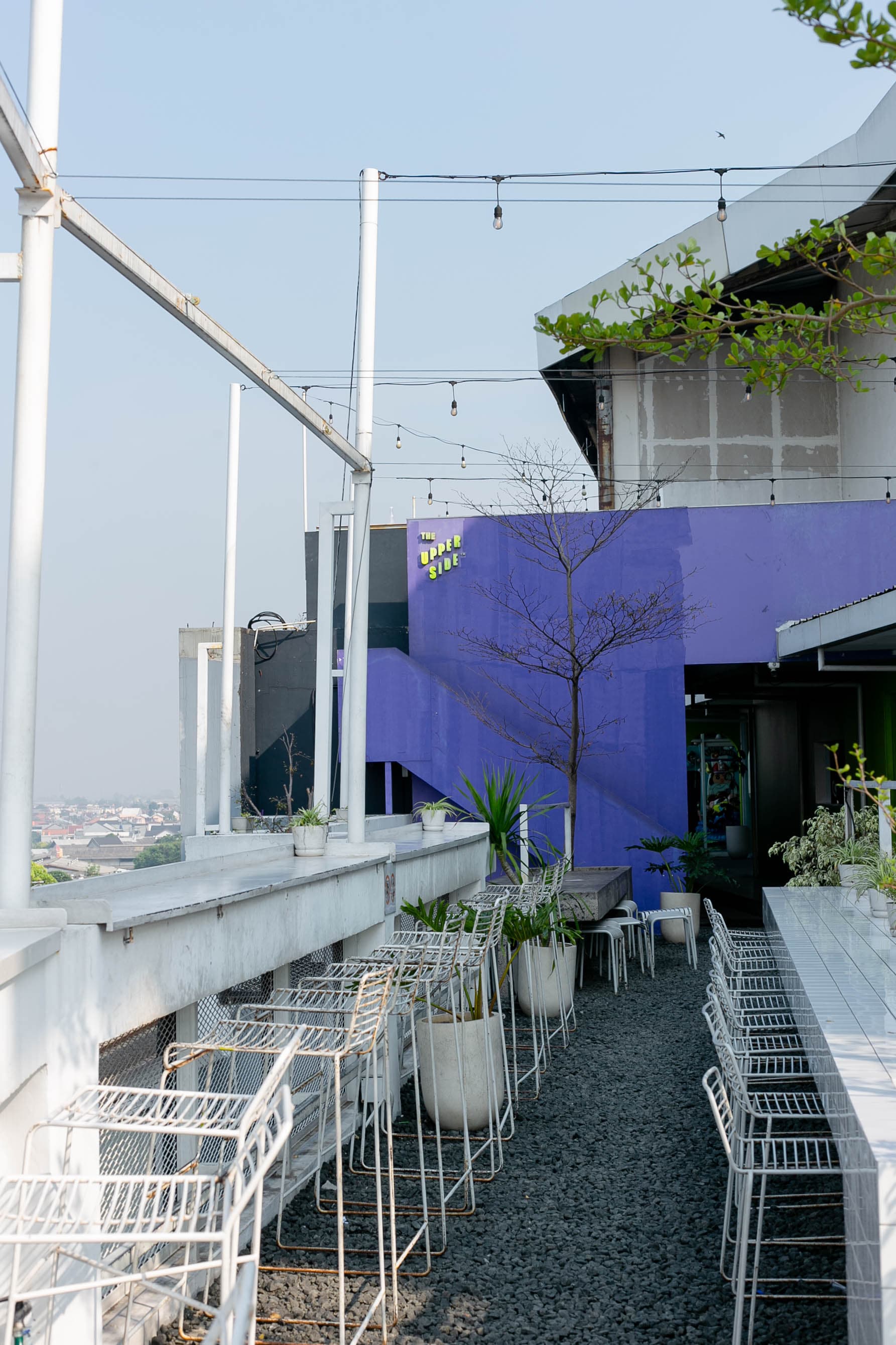 Area duduknya luas dan didominasi outdoor, jadinya cocok untuk yang ingin merasakan udara terbuka sambil sesekali menyeruput kopi. Ada juga pilihan semi-outdoor yang lebih teduh, serta satu ruangan indoor yang cukup luas. Dengan akses mudah dari parkiran lantai 3A Miko Mall, ditambah area parkir yang lega, The Upperside jadi pilihan cafe yang nyaman buat sekedar ngopi singkat maupun nongkrong lebih lama.