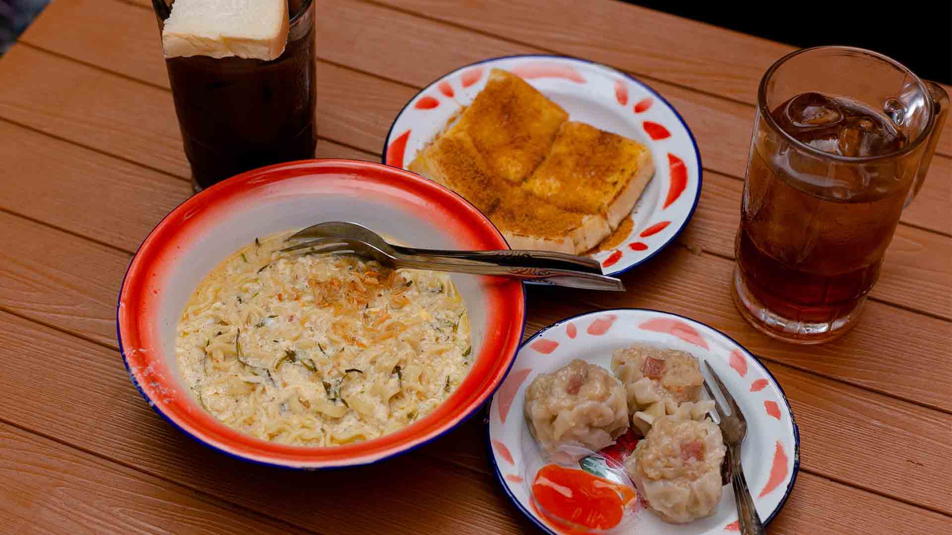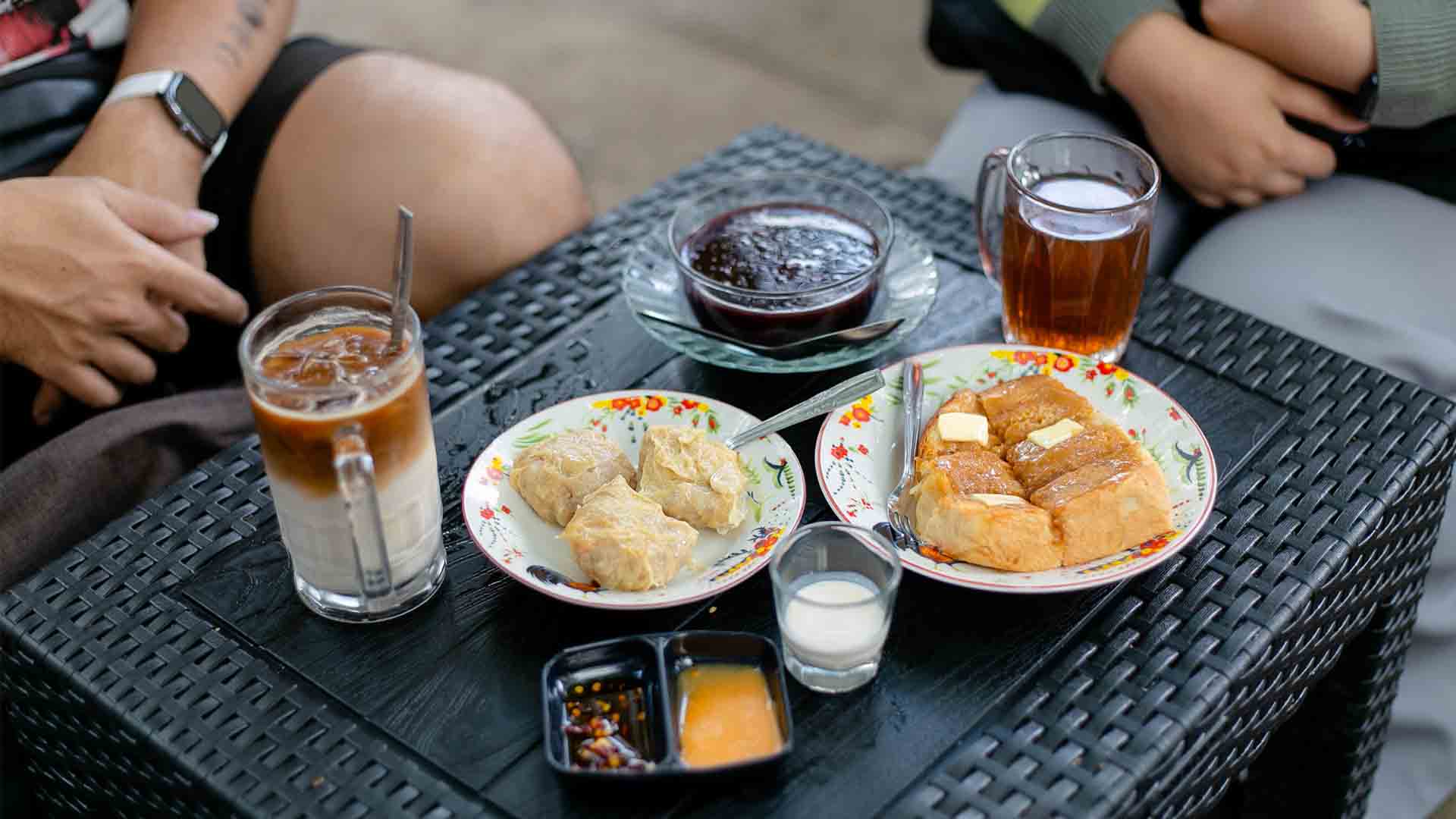 Menu sarapan Kopi Moyan bervariasi, termasuk menu satuan dan paketan yang tersedia hingga jam 9 pagi. Beberapa menu yang kami coba adalah Toast Kaya, Dimsum Udang, dan Bubur Ketan Item. Rasa keseluruhan menu tersebut enak, terutama dimsumnya yang lembut dan juicy.