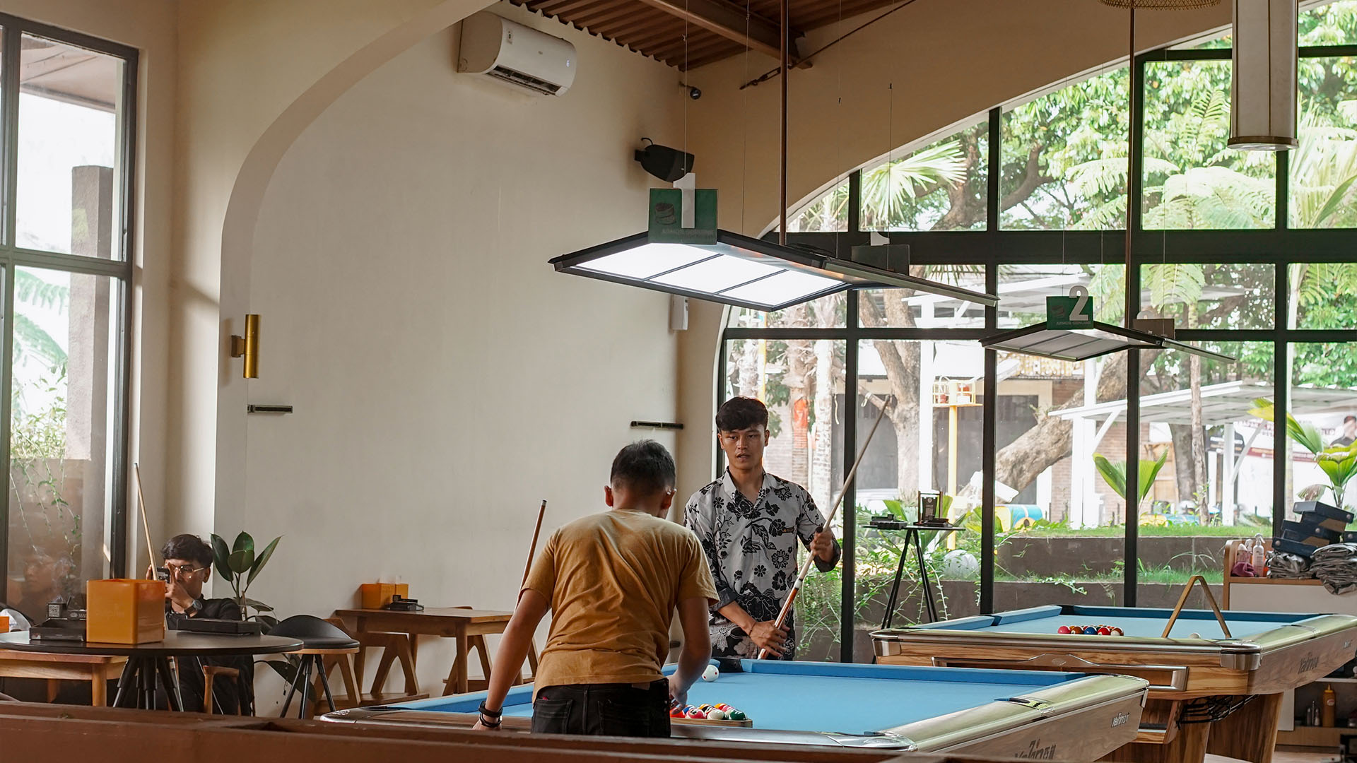 Ya! Di sini kalian bisa bermain billiard juga loh! Gak tanggung-tanggung, ada 8 meja billiard yang bisa kalian sewa dengan harga 60K per jam untuk bermain bersama teman atau keluarga.