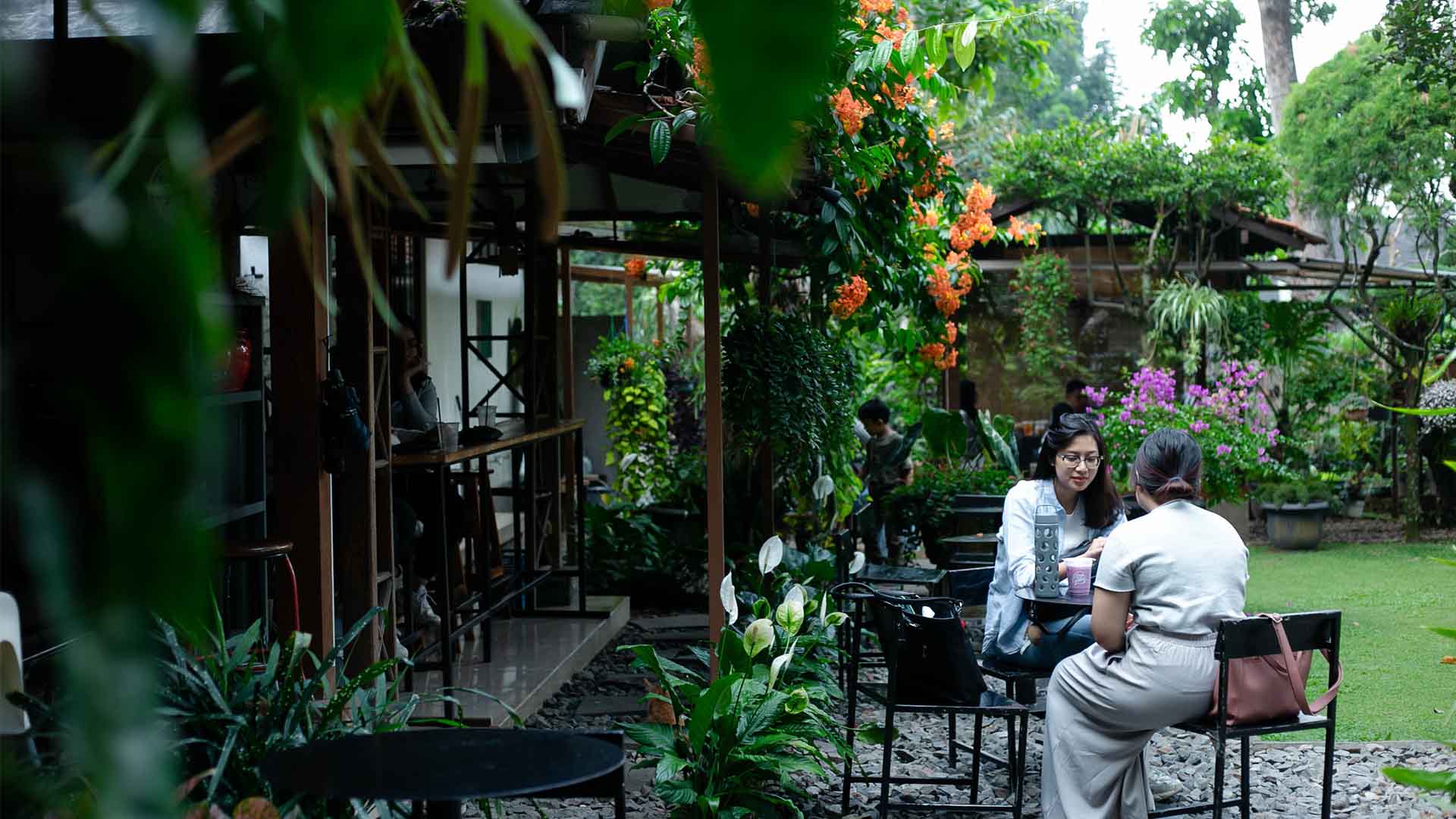 Layaknya di rumah nenek, Kopi Eyang menghadirkan suasana rumah yang hangat. Makanya tempat ini cocok dikunjungi untuk bersantai tanpa harus terganggu riuhnya perkotaan. Banyaknya pepohonan dan tetumbuhan di area duduknya pasti bikin para pengunjung betah untuk berlama-lama di sini. Indah bukan?