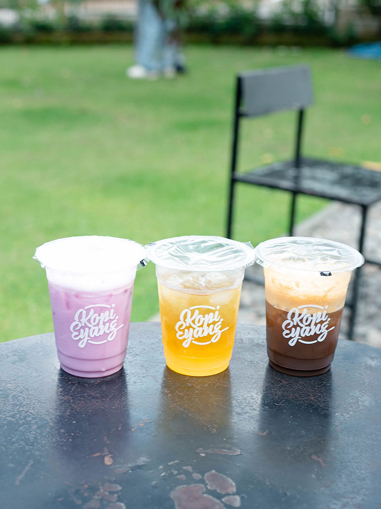 Menu Kopi Eyang terdiri dari beragam aneka makanan dan minuman dengan harga standar coffee shop di Bandung. Untuk minumannya dibanderol mulai dari Rp18.000. Para pecinta kopi harus mampir ke sini karena pilihan biji kopi dan teknik seduh kopinya variatif. Barista Kopi Eyang juga menyajikan kopi secara manual seperti V60, Vietnam Drip, Chemex, Siphon, hingga Japanese. Kalian pecinta kopi susu tak perlu khawatir karena Kopi Eyang juga menyediakan menu es kopi susu dengan harga Rp23.000 saja. Hmm menarik, kan?